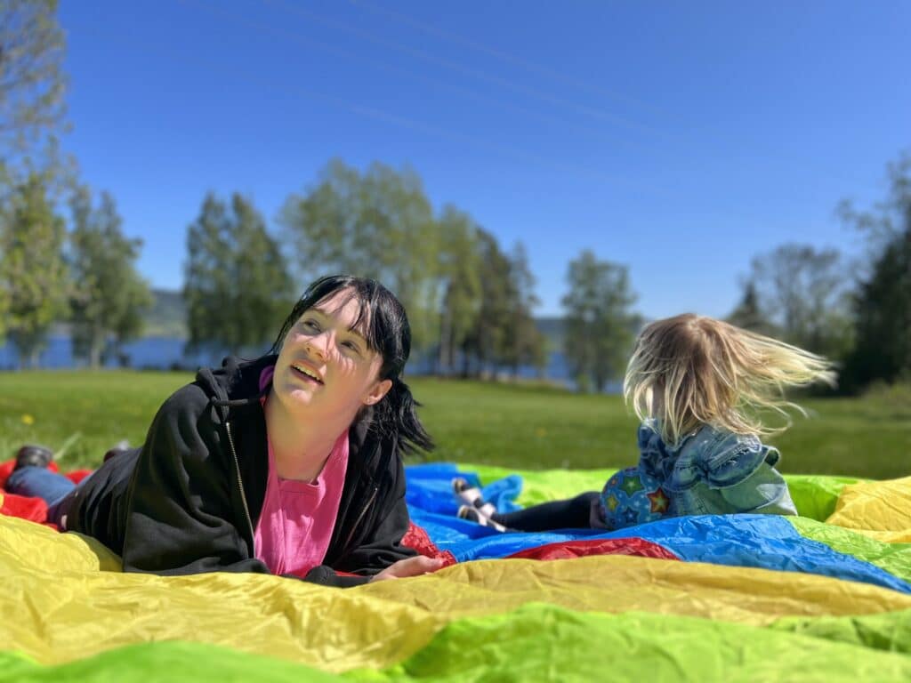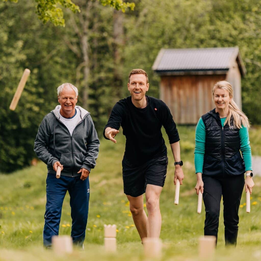 Uteaktiviteter som kubb, volleball, bading i Mjøsa